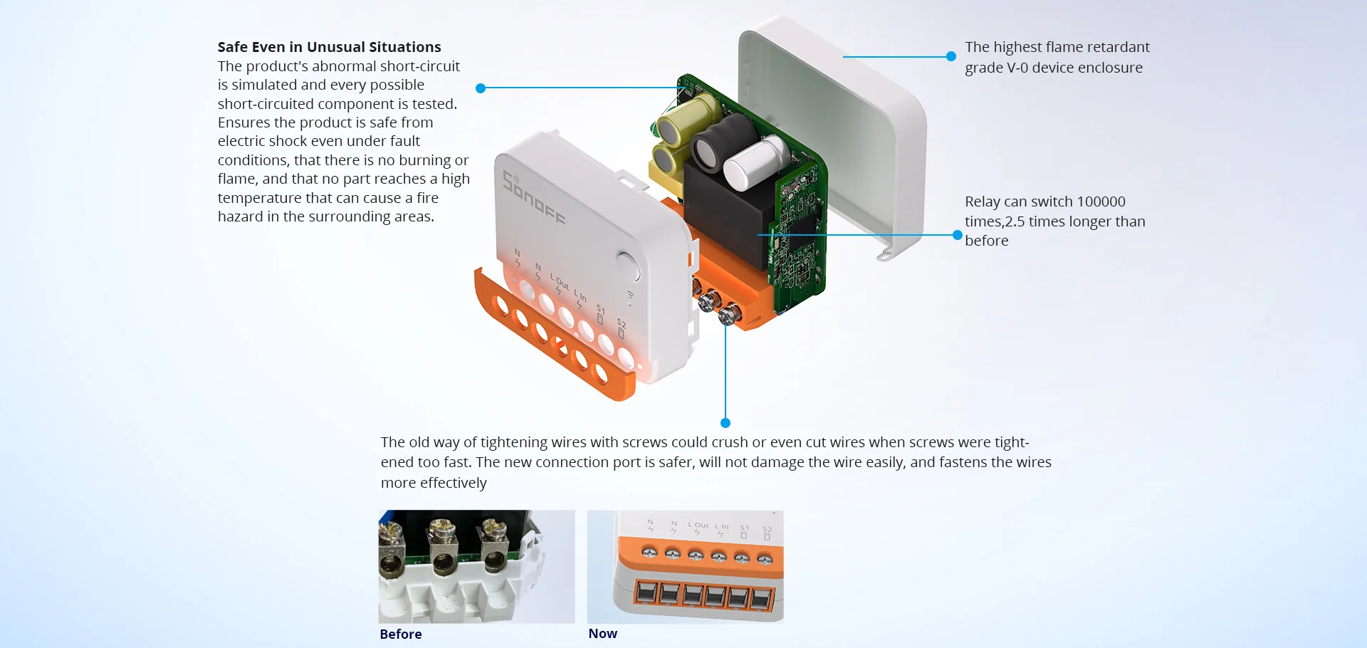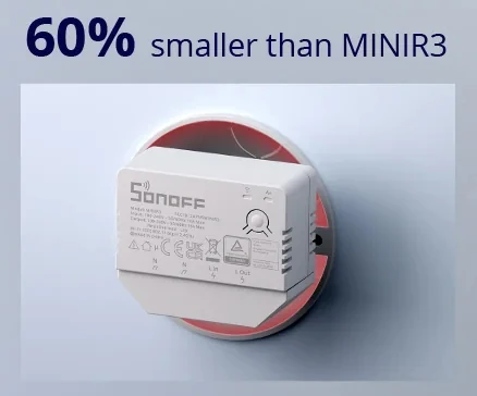 | Mini than Ever, Adapts to Various Boxes A brand new product that turns traditional switches intosmart switches, automating lights and electronic devicesS.It's 40% smaller than MINIR2, fits in various mounting boxes, iincluding the smallest European standard ones. |